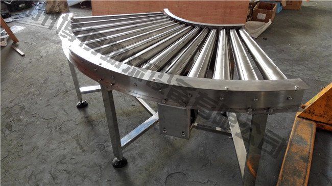 為確保貨物能夠平穩(wěn)輸送,**在任何時(shí)間點(diǎn)都至少有三只輥筒與輸送物保持接觸。對(duì)軟袋包裝物**時(shí)應(yīng)加托盤輸送。